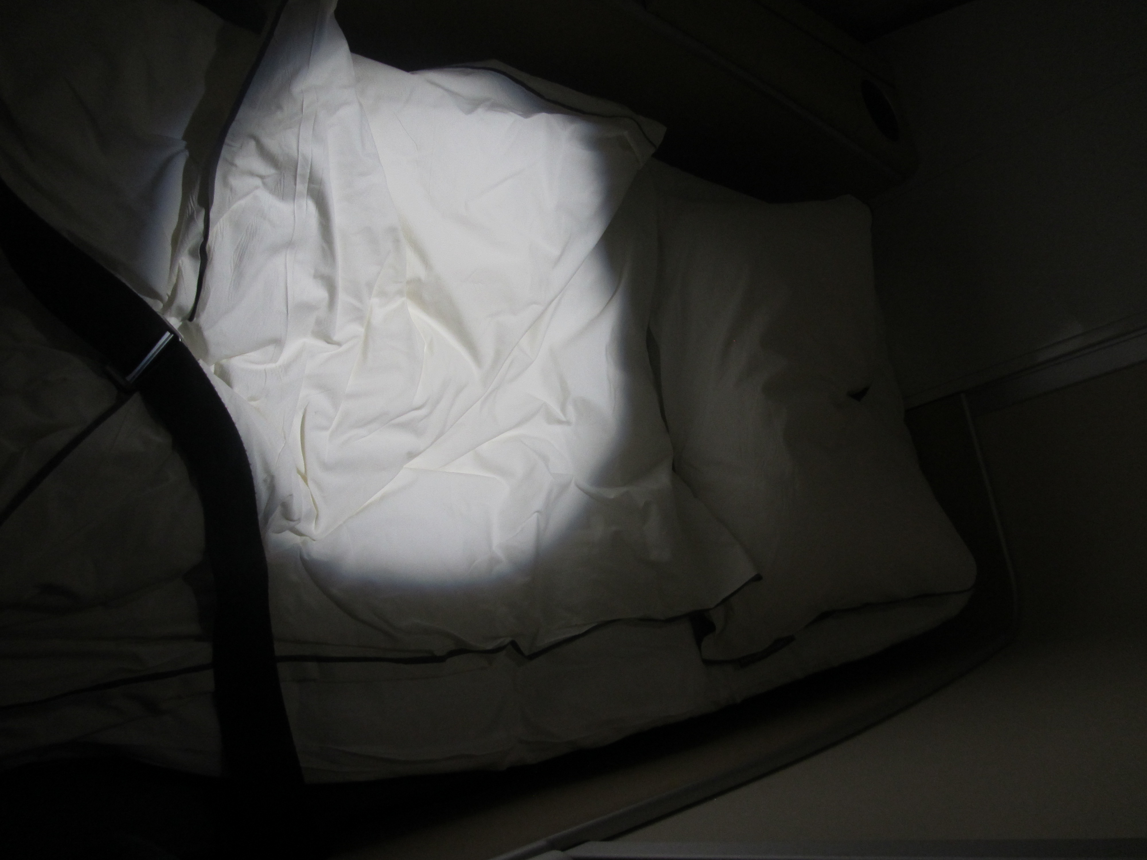 One of the flight attendants stopped by to drop off a pair of pajamas and an amenity kit.